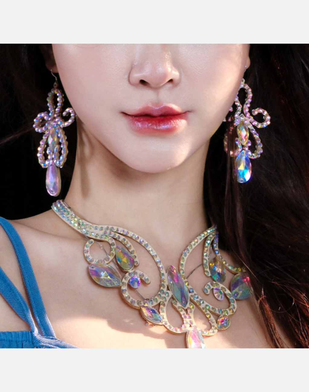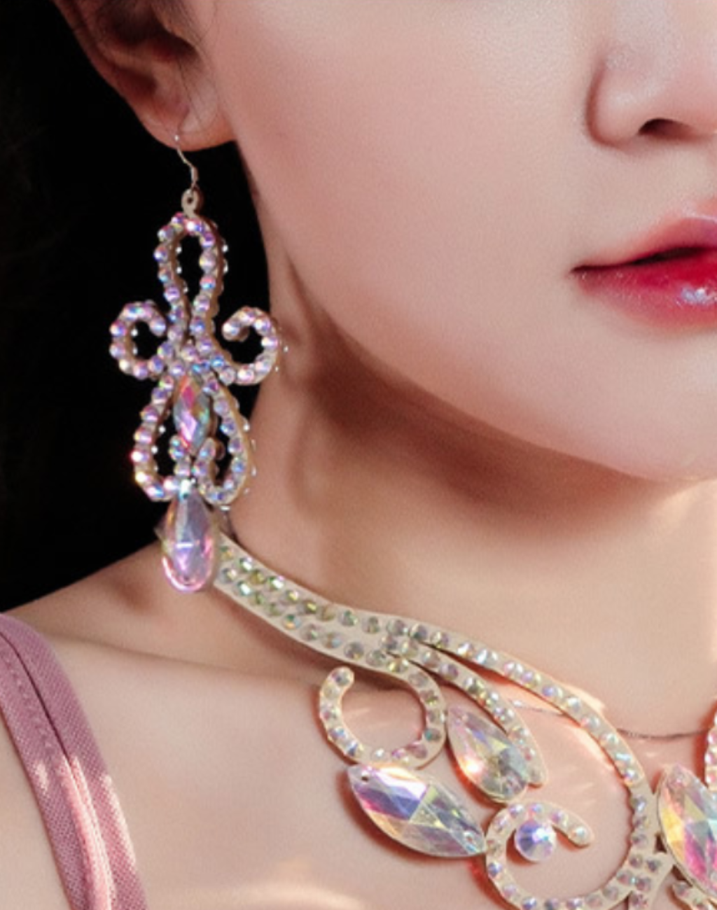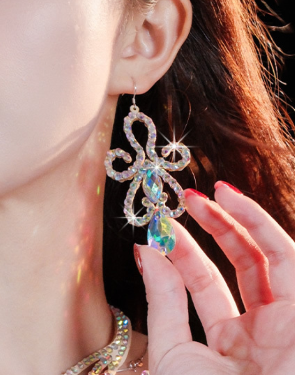 ベリーダンス衣装・レッスンウェアがワンランク格上げされて垢抜ける大振りビジューが表裏両面に敷き詰められたフラワーモチーフのピアス。
