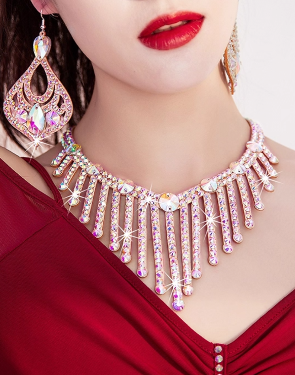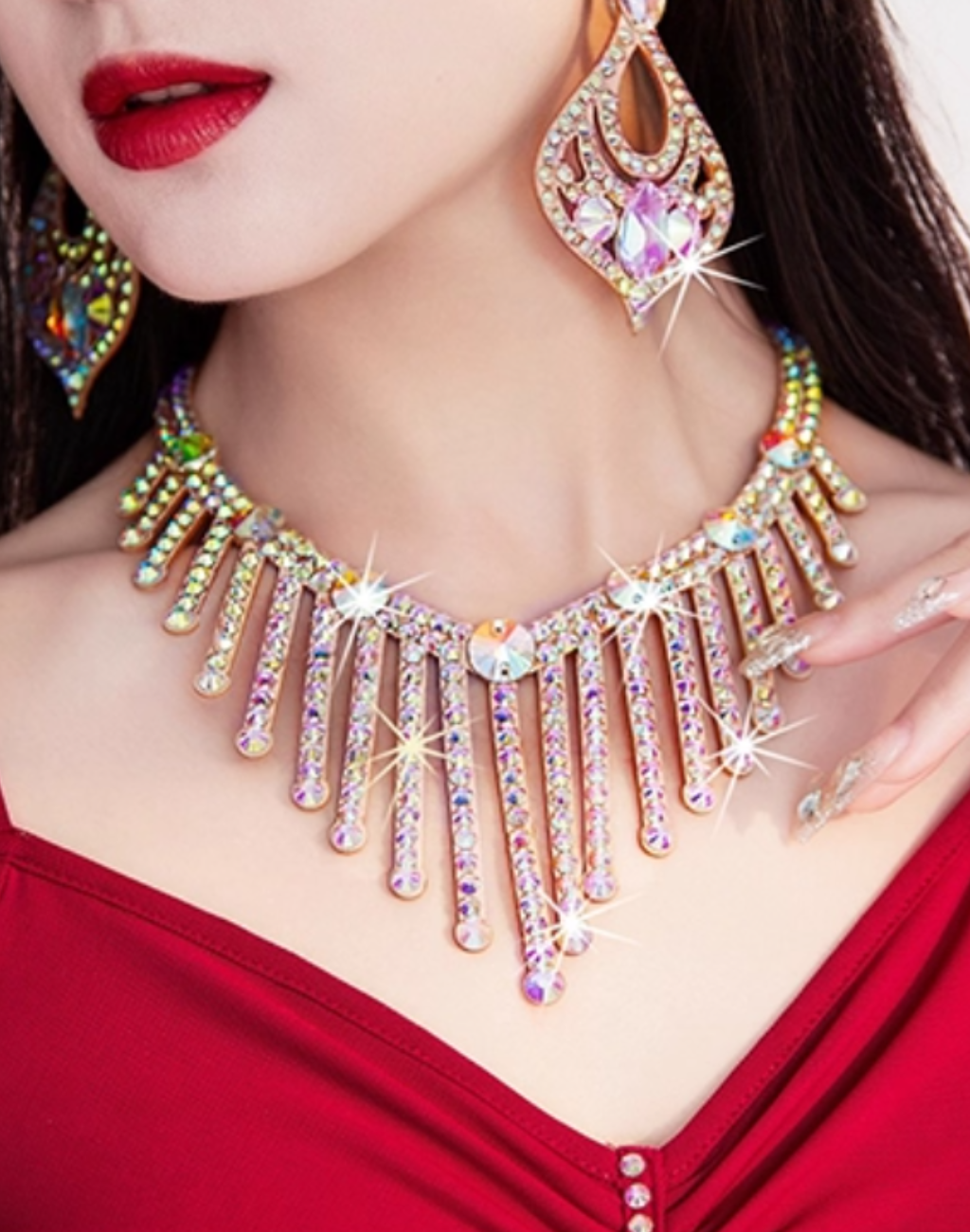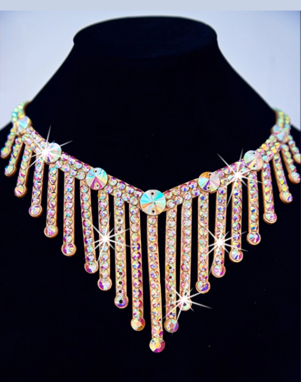 ステージや発表会での装いを、ひときわ華やかに見せてくれる大粒のビジュー付きネックレス。