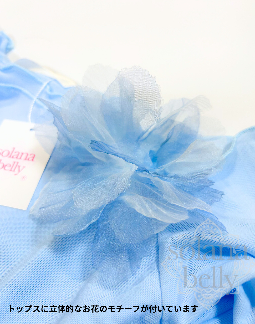 落ち着いたブルーの配色が大人のベリーダンサーにオススメの一着です。
