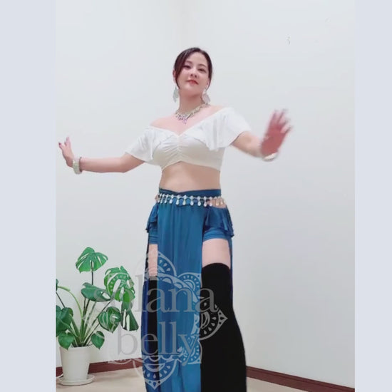 【数量限定・最短翌日発送】白×青の爽やかなコントラストで魅せるベリーダンス レッスン着