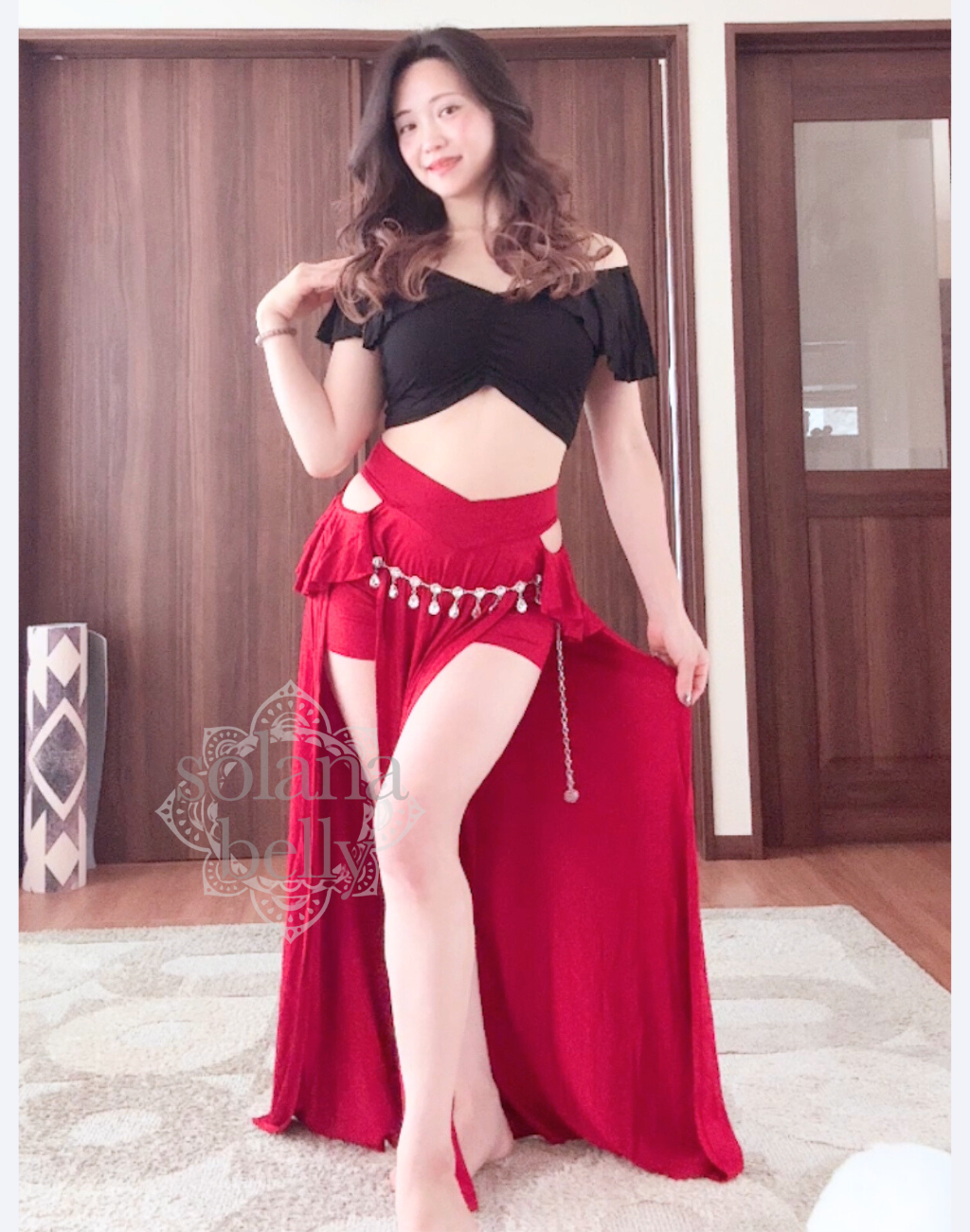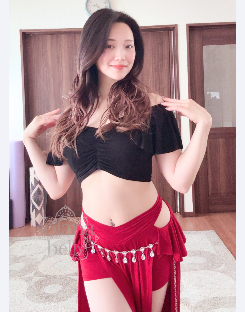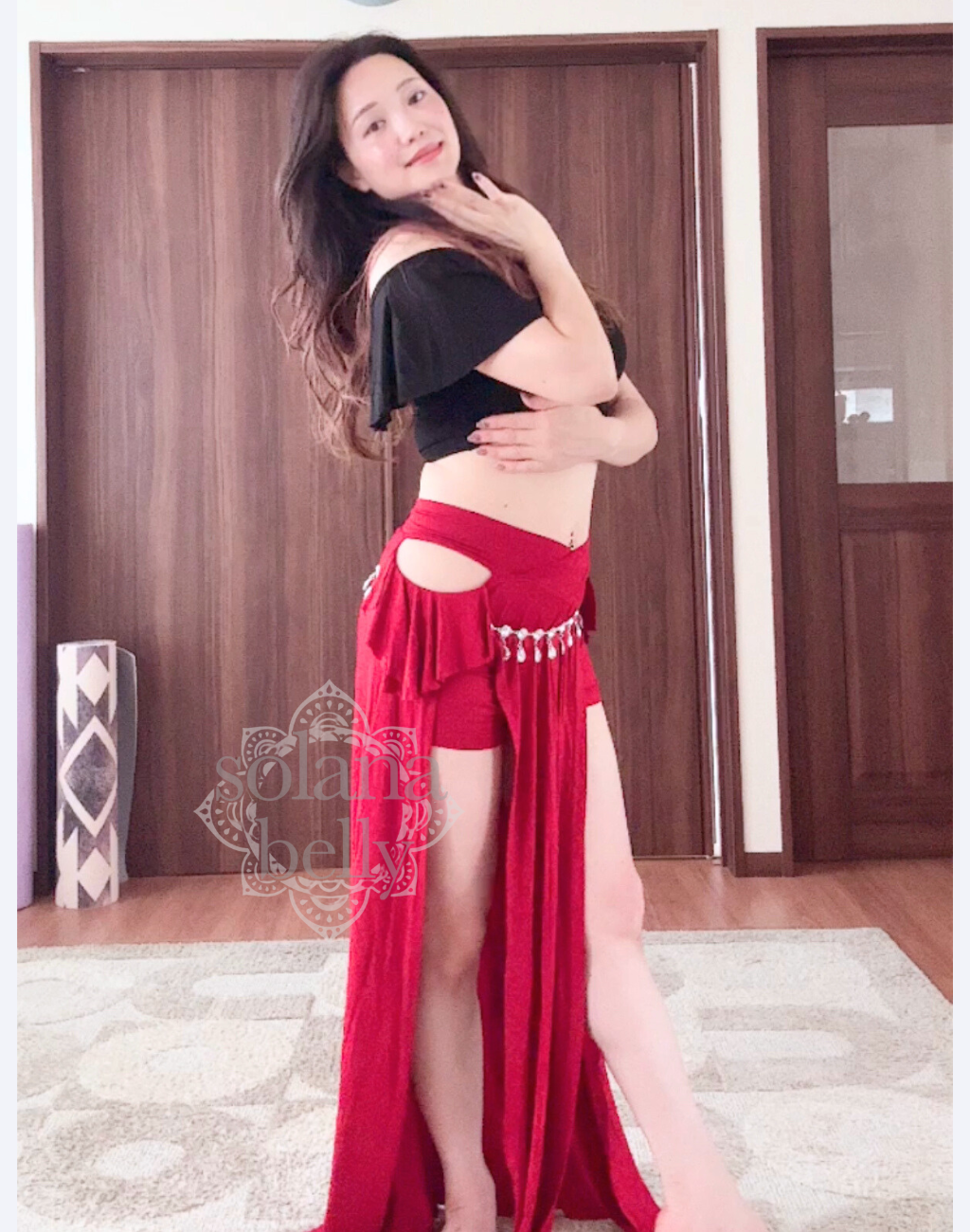赤×黒の上品なコントラストが魅力の、大人の女性にぴったりなベリーダンス レッスン着。