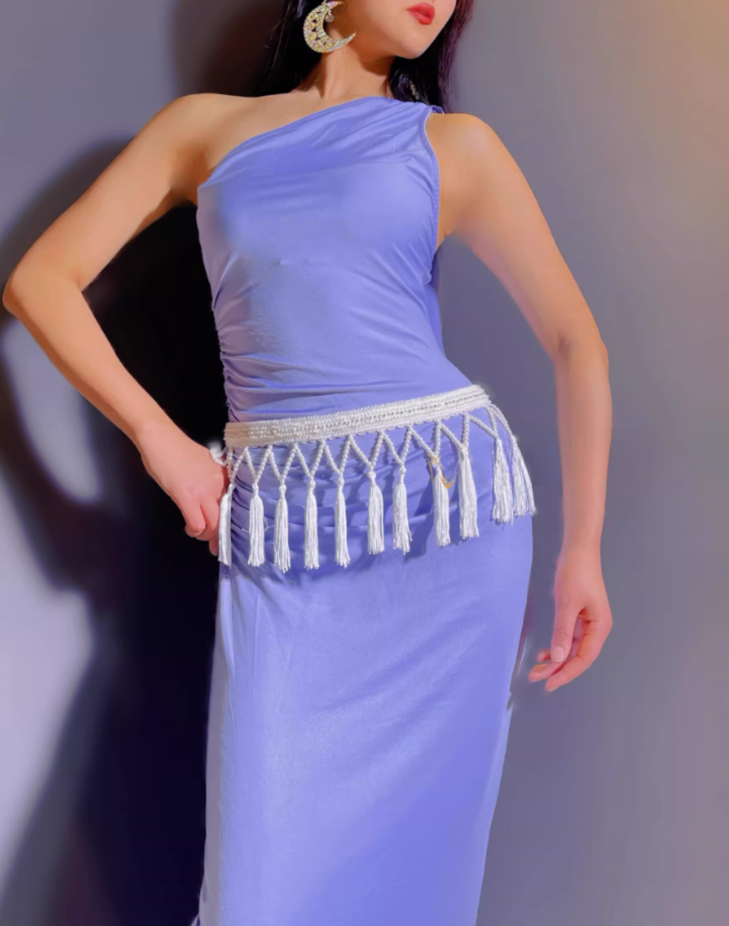 ビーズとフリンジがヒップワークの度に輝きダイナミックな印象に!